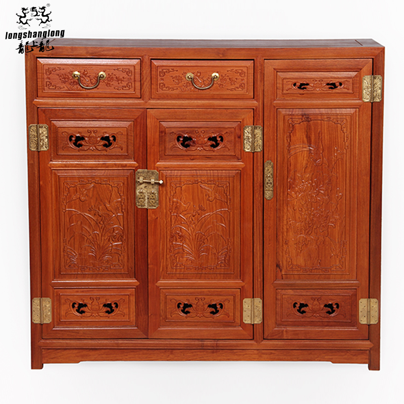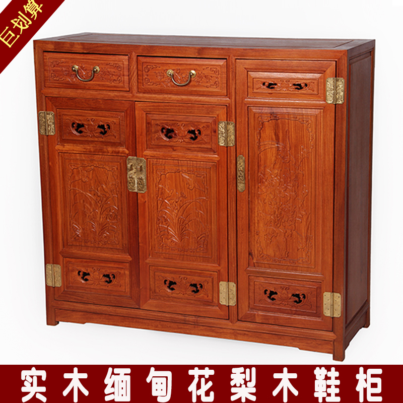 龙上龙东阳红木缅甸花梨三门鞋柜XG065