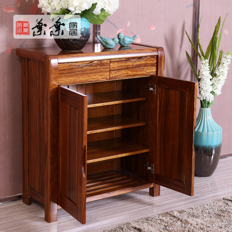 叶叶乌金木纯实木双门带抽屉鞋柜532
