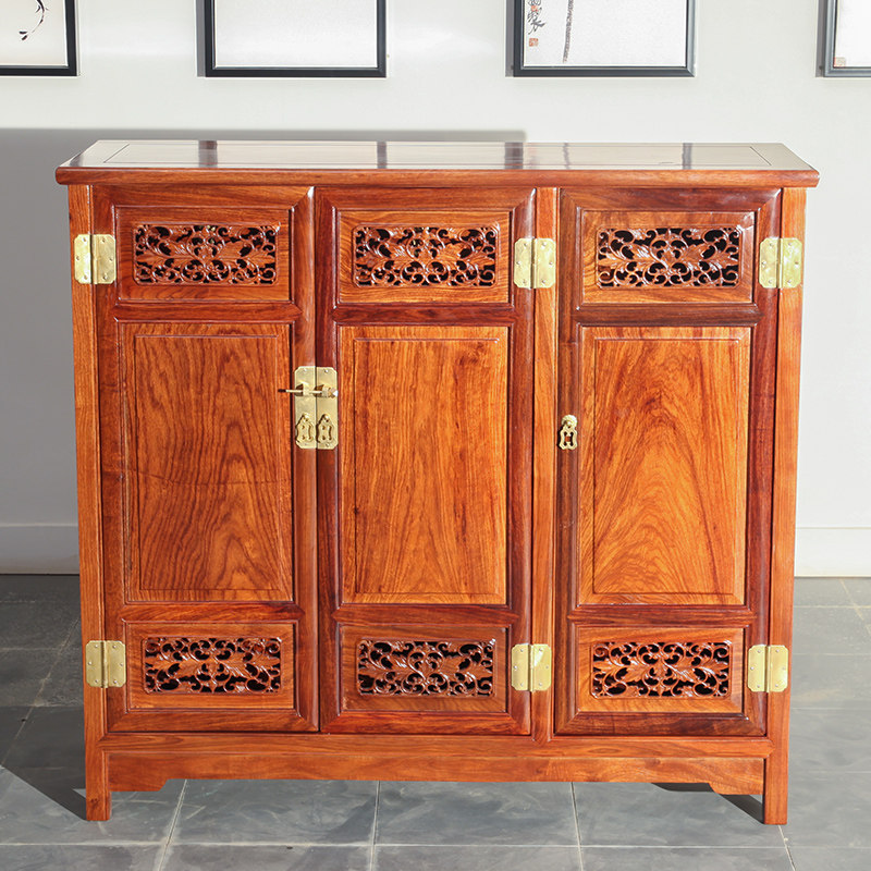 冈州红木鞋柜非洲黄花梨木三门鞋柜