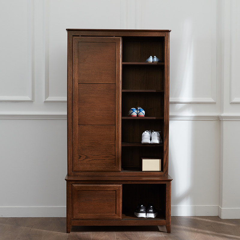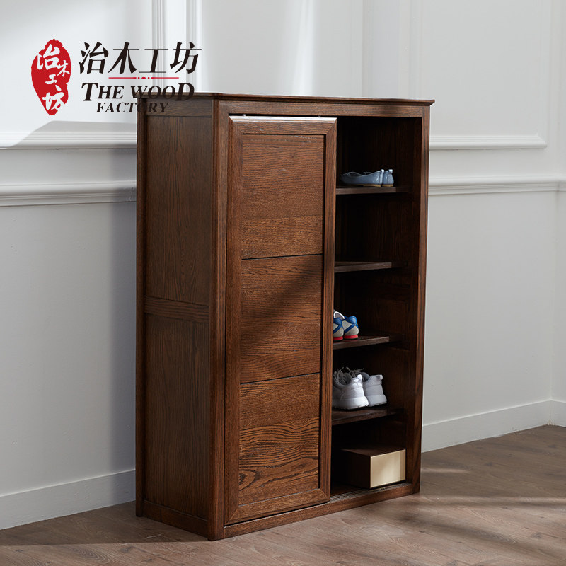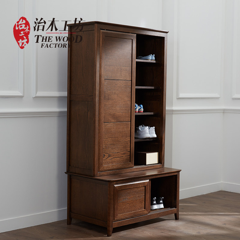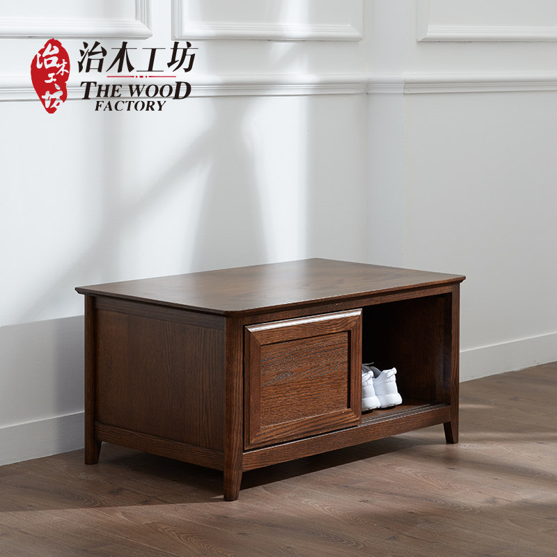 治木工坊纯实木美式黑胡桃色鞋柜 BTLXG-02