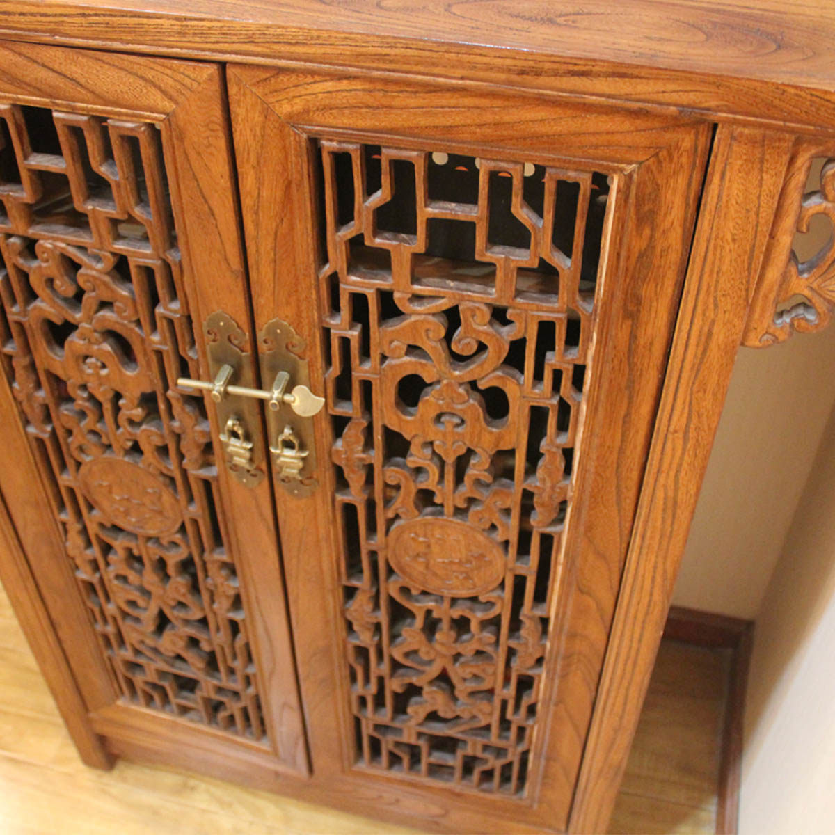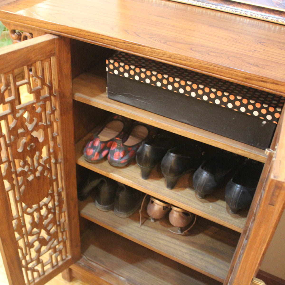 一木缘雕刻工艺老榆木鞋柜ymy-xg-dh