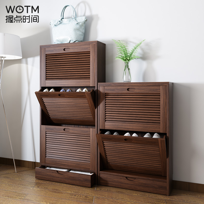WOTIME实木超薄现代翻斗百叶门柜