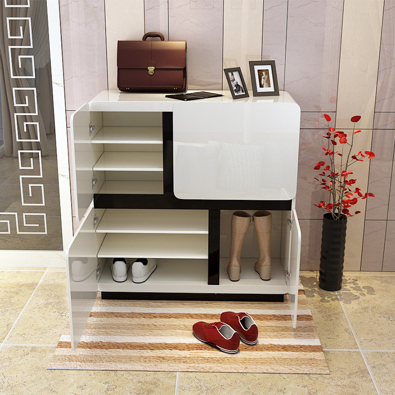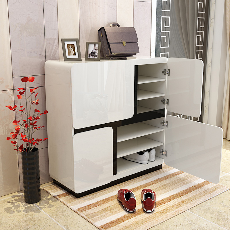 菲艺轩简约钢化玻璃白色烤漆鞋柜