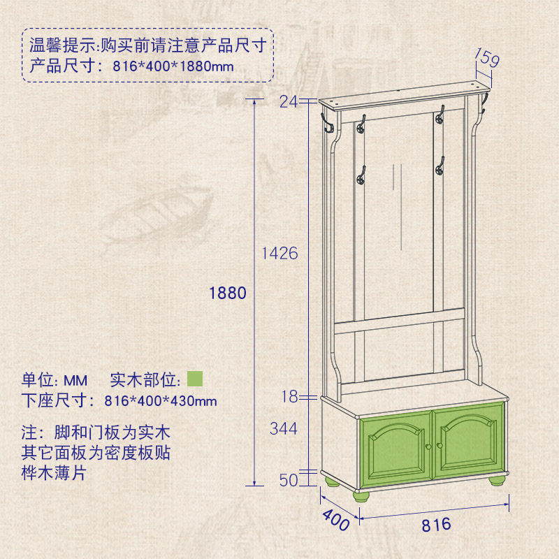 好战友衣帽架穿衣镜鞋柜HZYM-0032