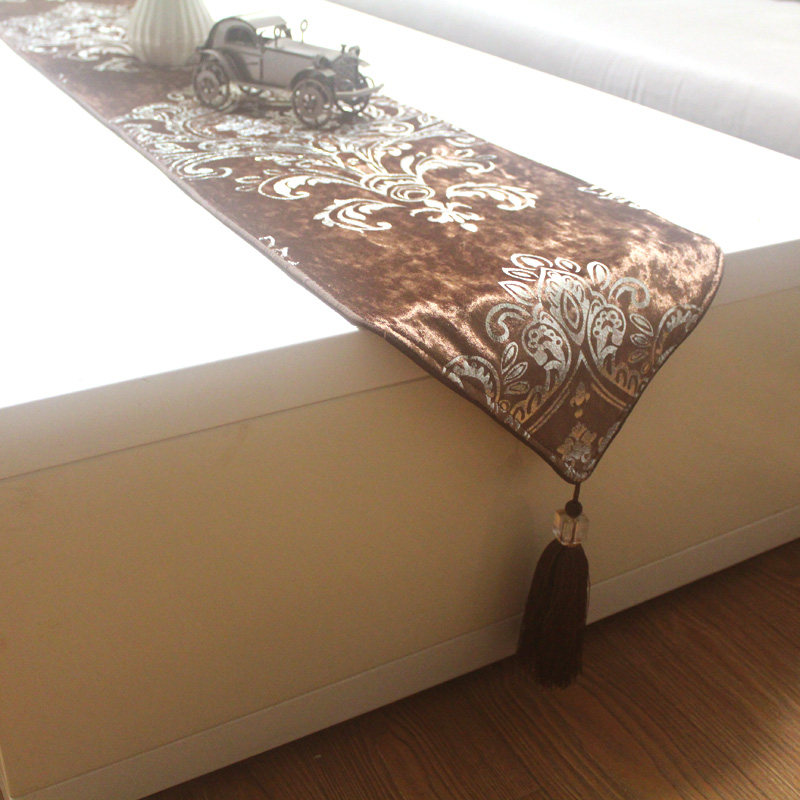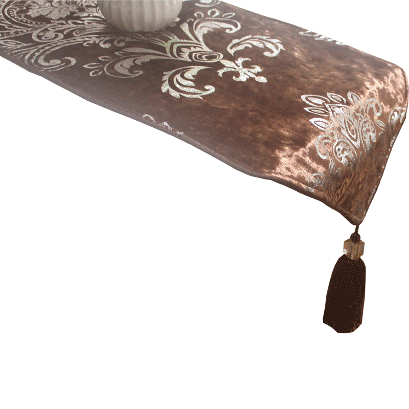 丝茉尔咖啡欧式丝绒布艺烫银餐桌桌旗zq05