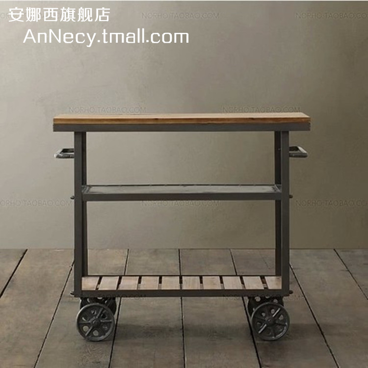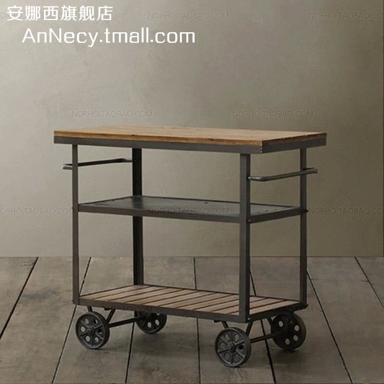 安娜西美式铁艺实木餐车餐边柜子