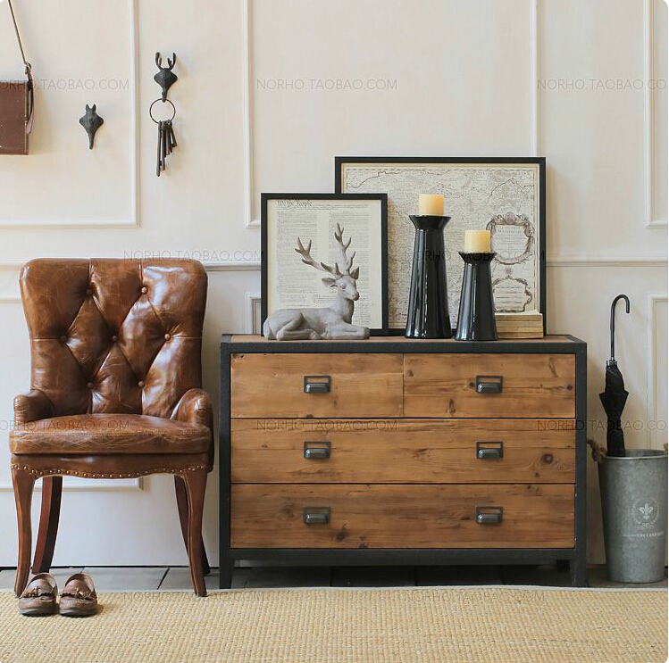 知家美式乡村复古做旧铁艺实木斗柜GZ0610022