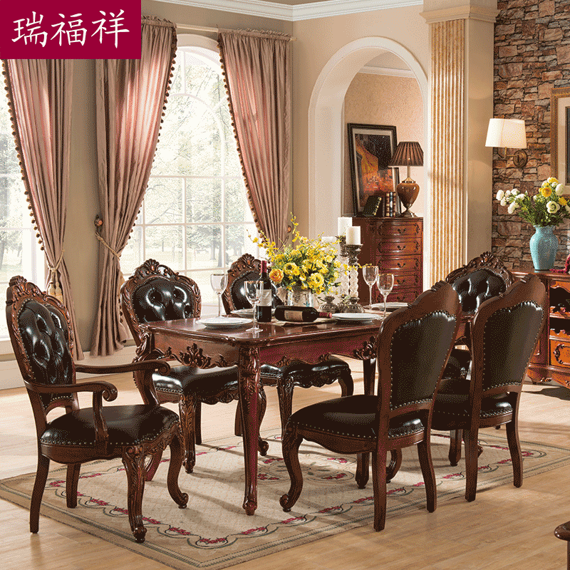 瑞福祥美式成套家具一桌六椅+餐边柜aa9