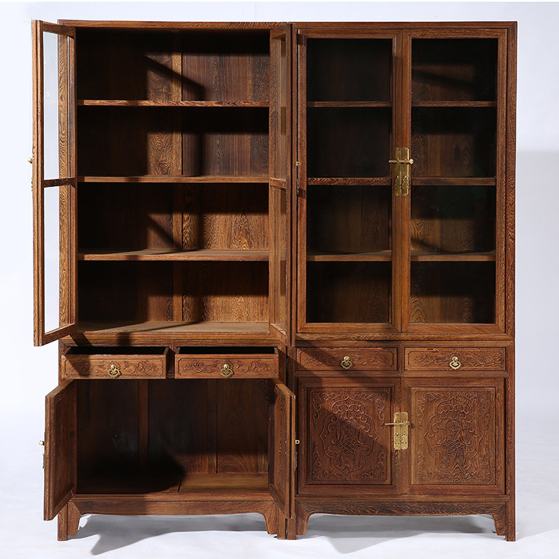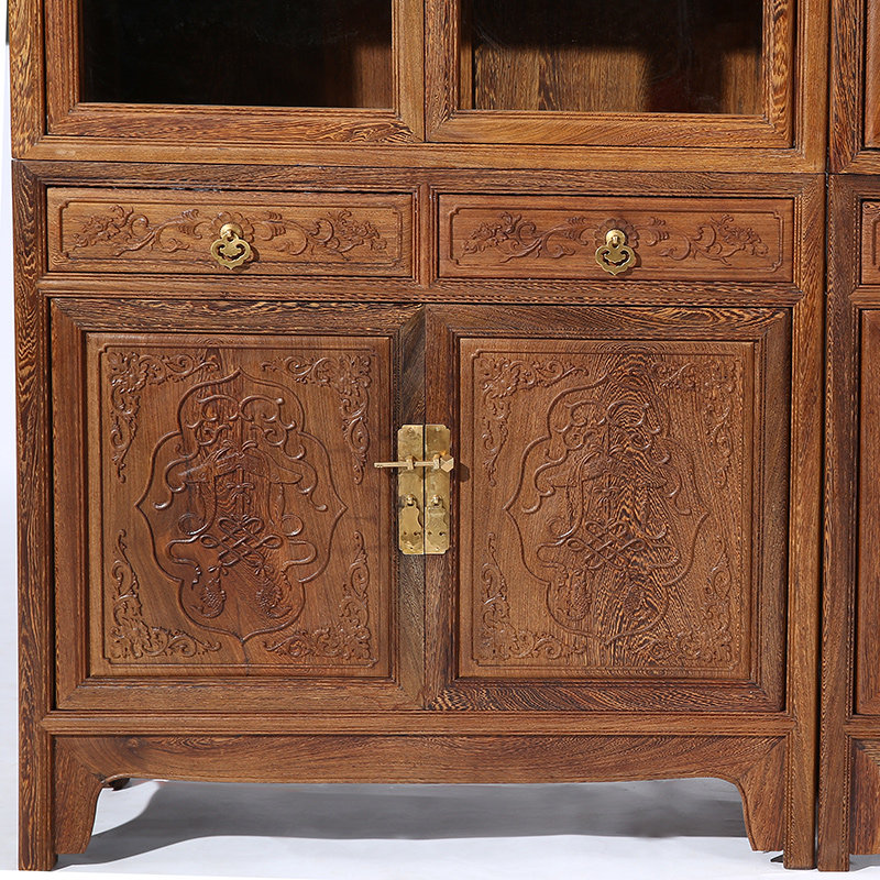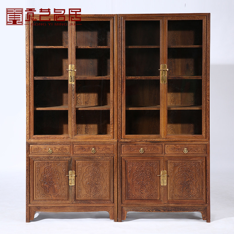 贡艺名居红木家具全鸡翅木玻璃门书柜GY2015