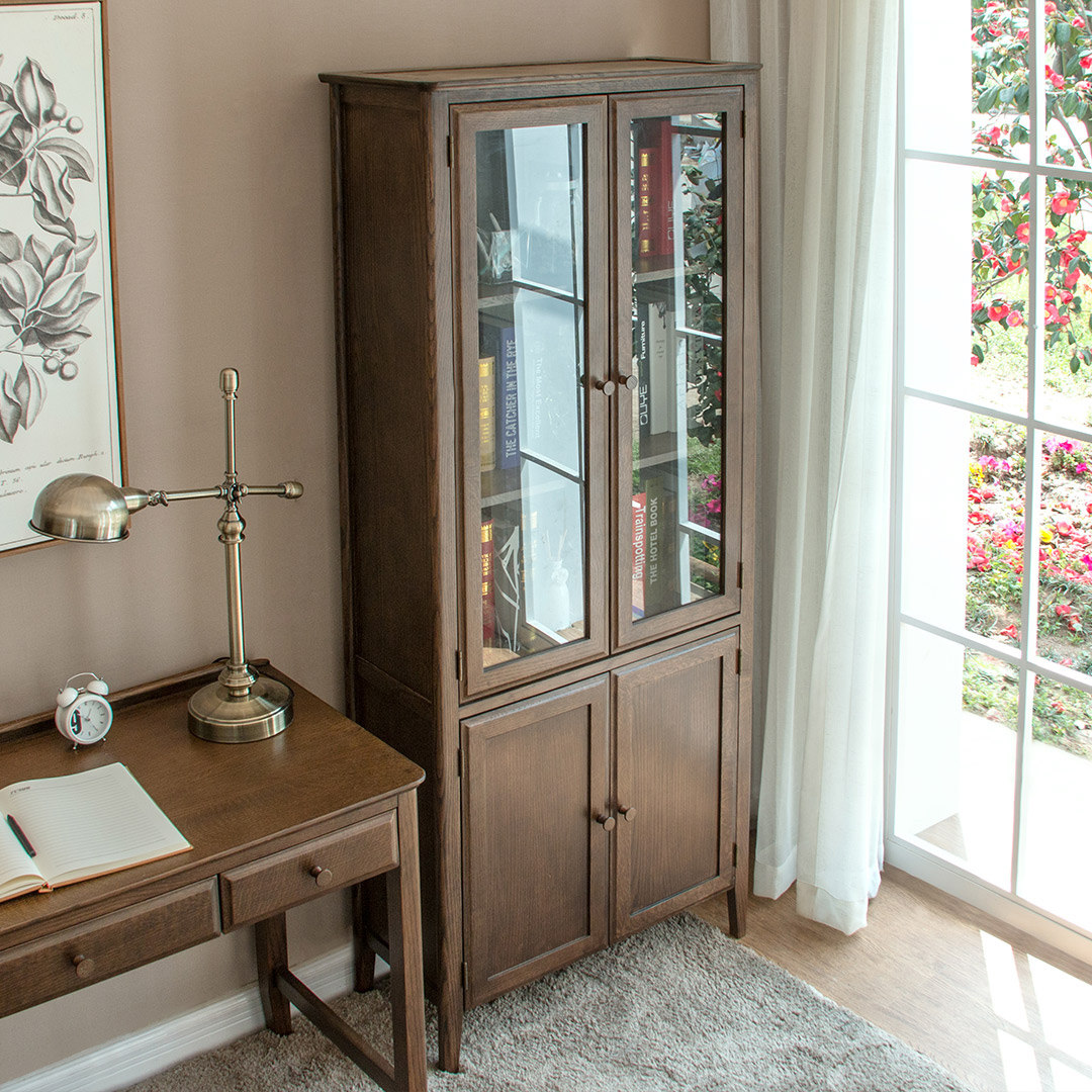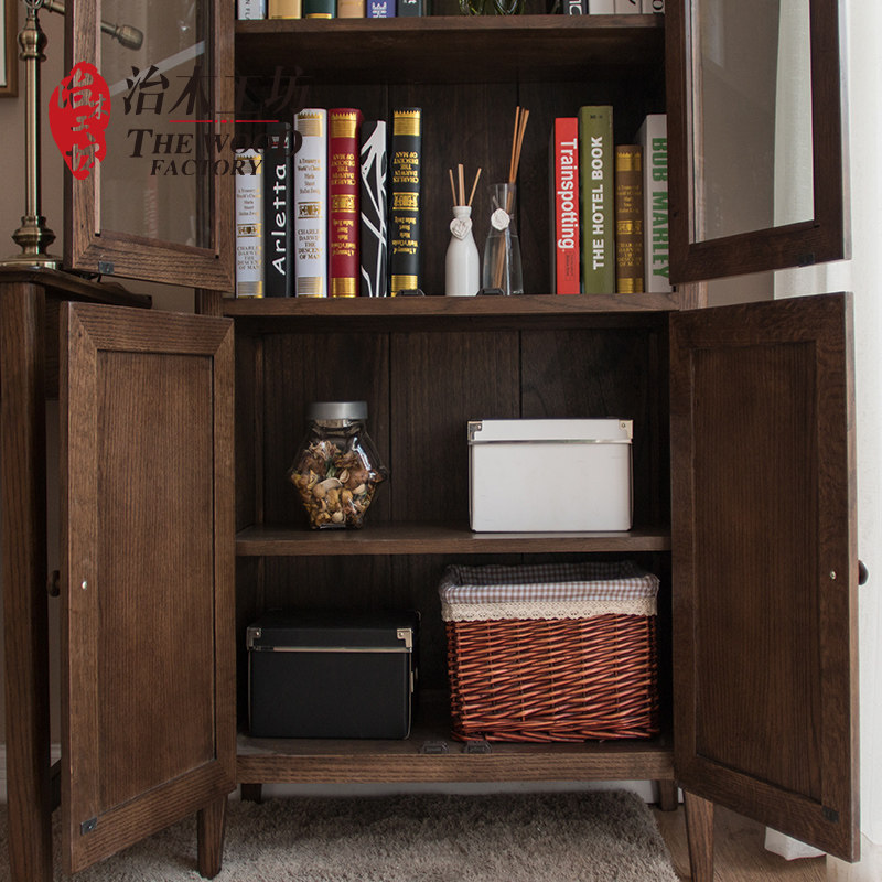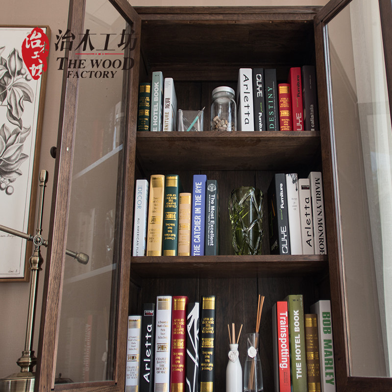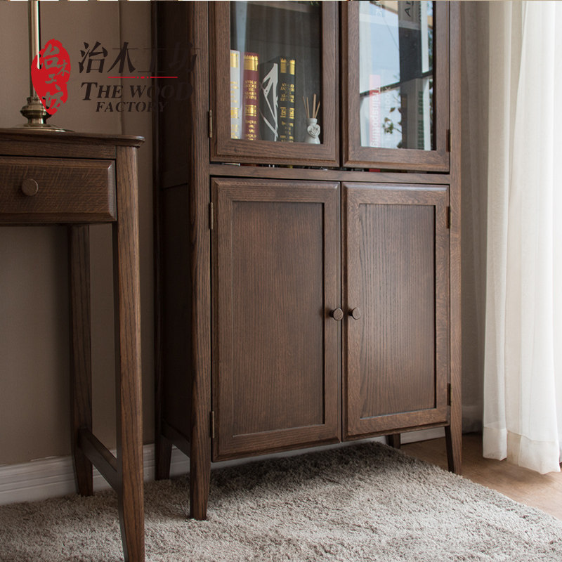 治木工坊纯实木玻璃书柜B-SG04