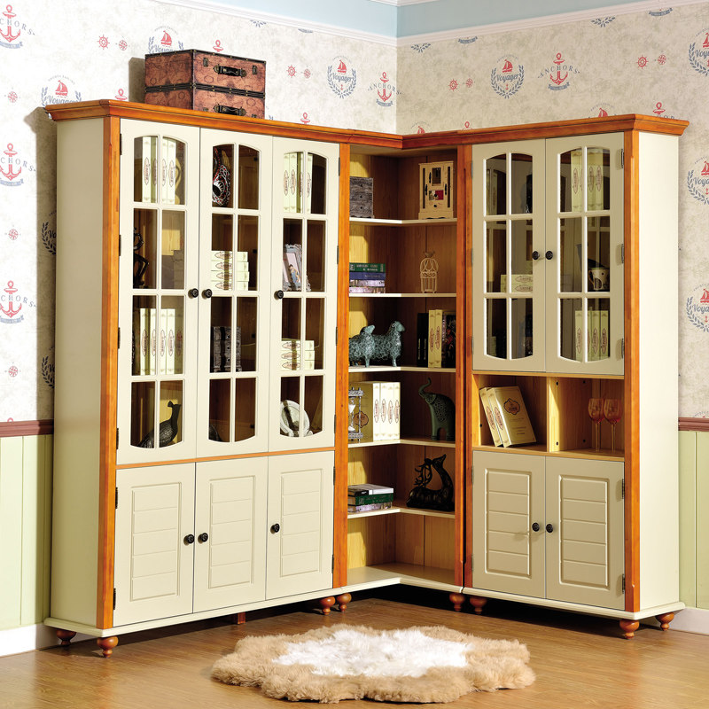 巴比森地中海实木白色柜玻璃门书橱SG102