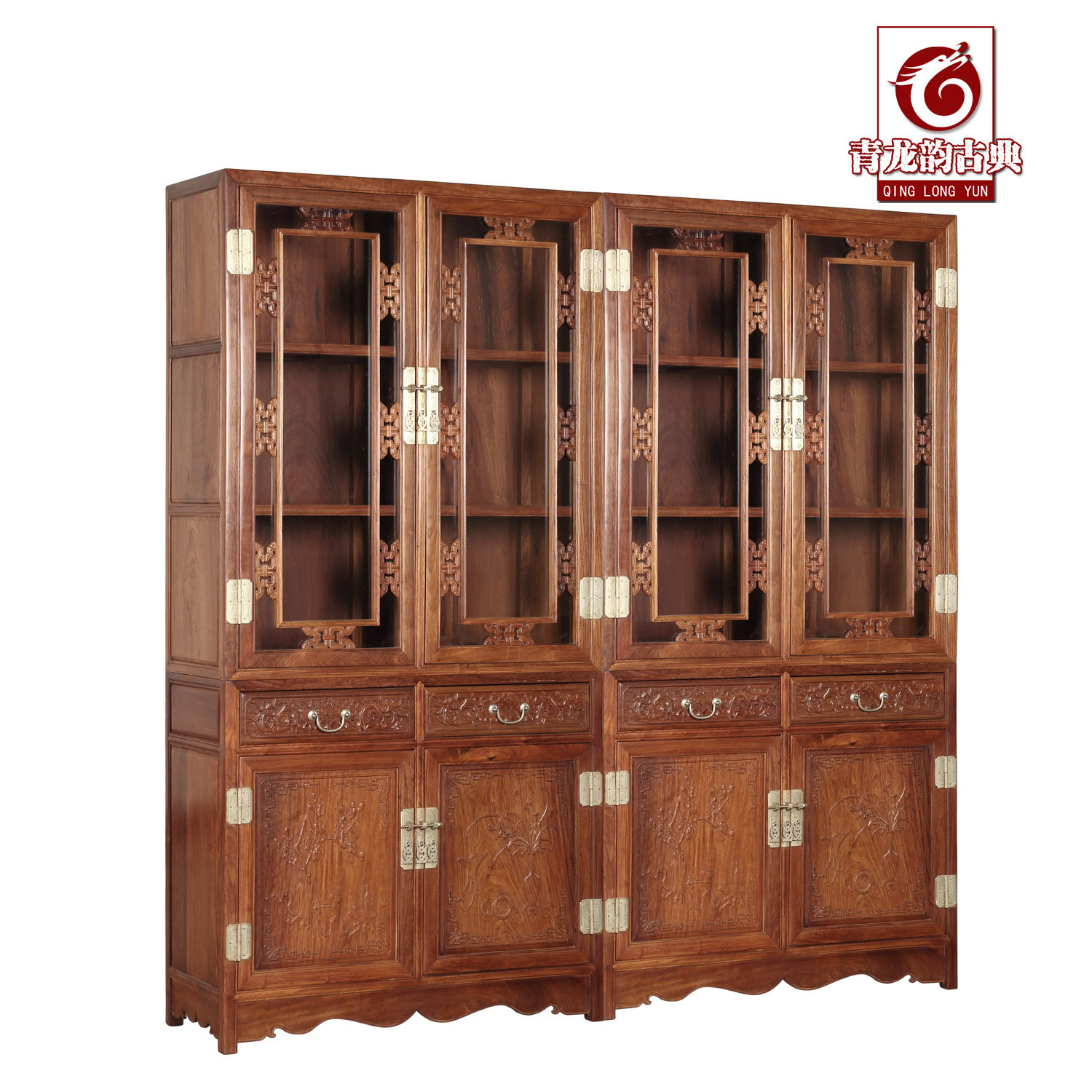 青龙韵红木家具带玻璃门书橱bgj037