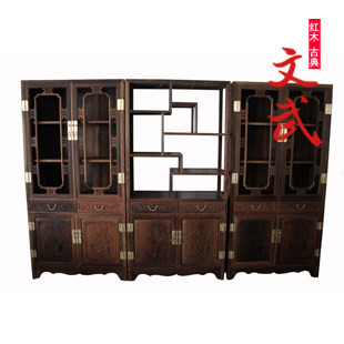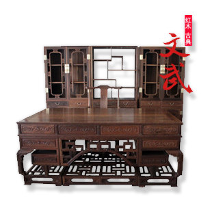 文武红木家具鸡翅木办公桌博古架