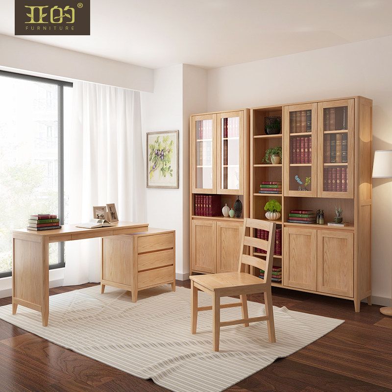 亚的纯全实木带门书柜M01
