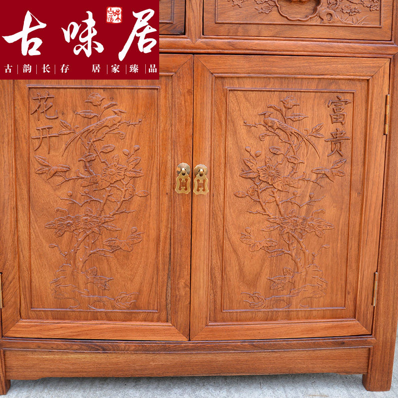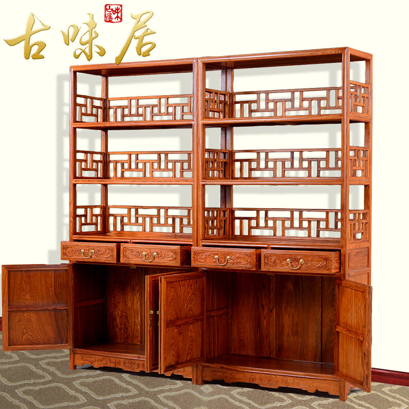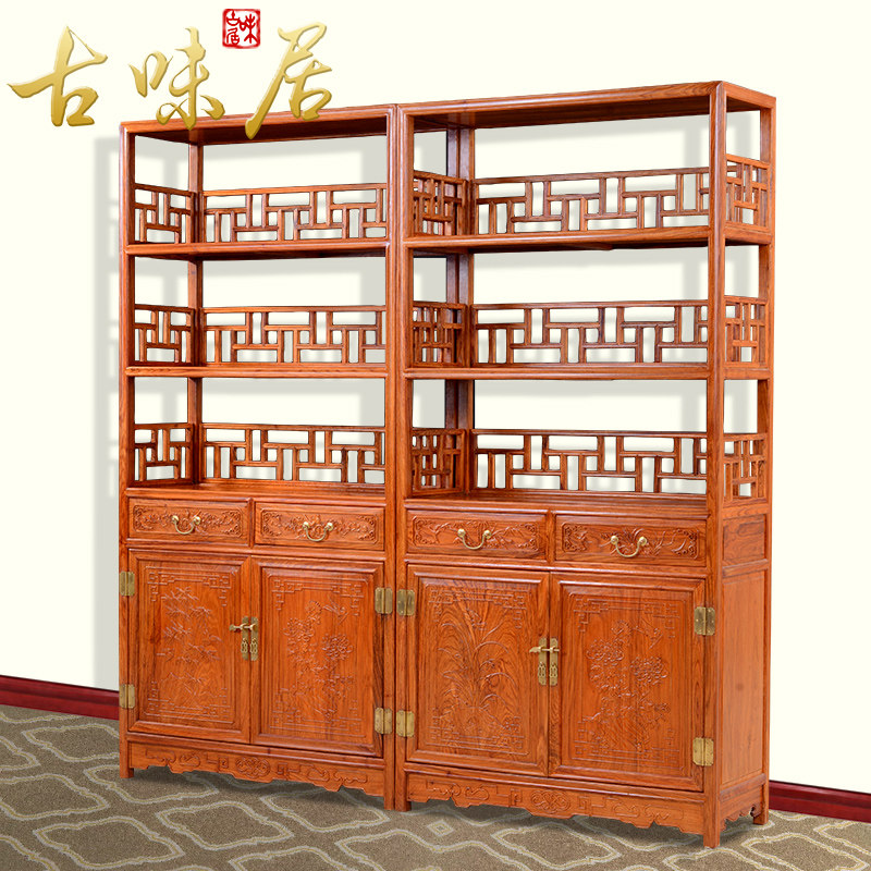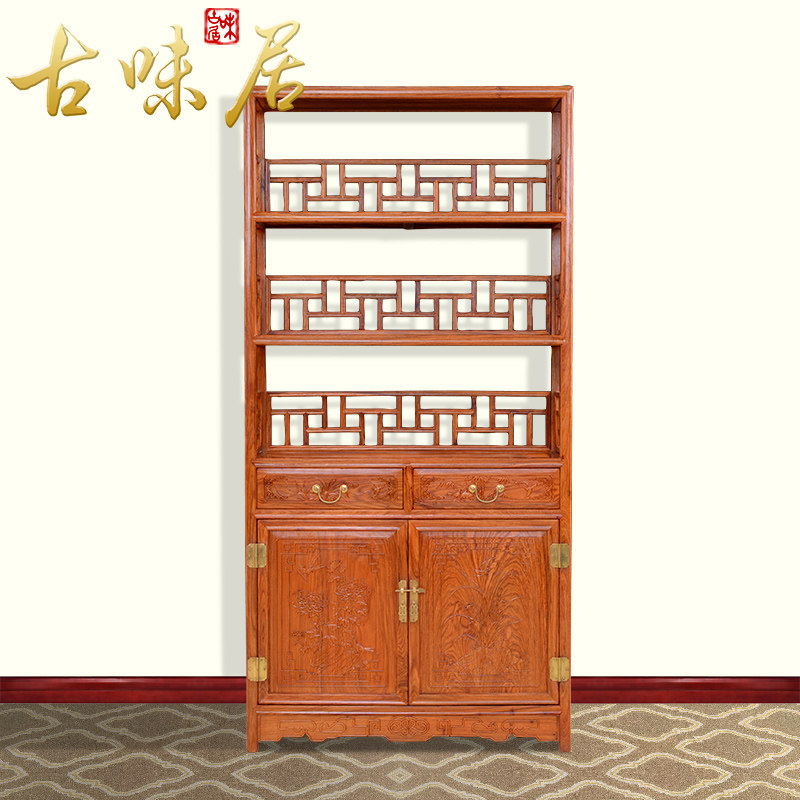 古味居中式红木刺猬紫檀三层书柜hg5