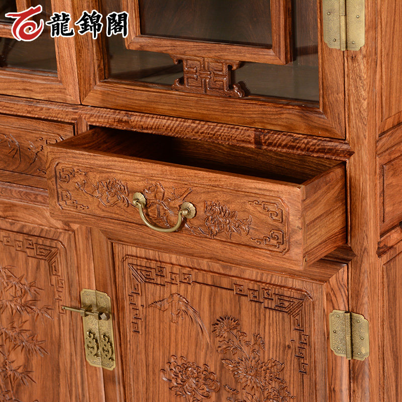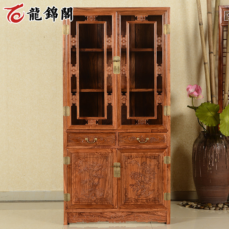 龙锦阁红木带玻璃门仿古中式书橱SGJ-010