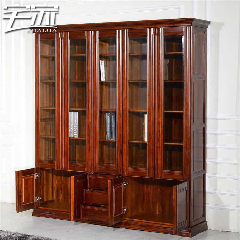 宅家缅甸柚木家具五门书柜A1无门书柜
