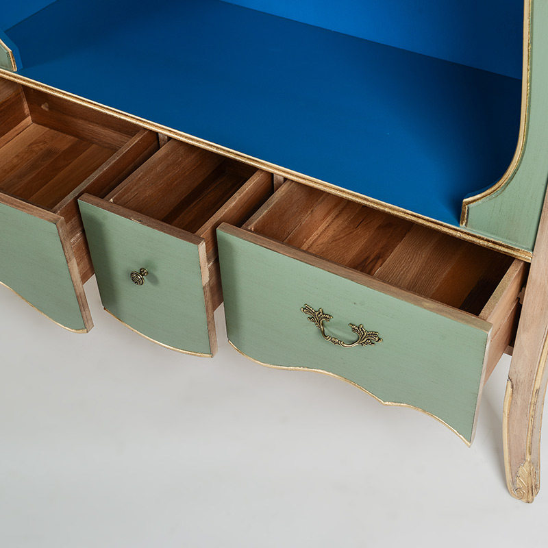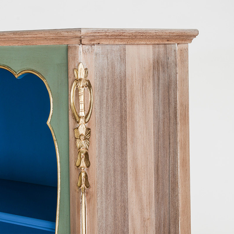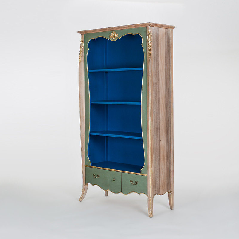 奇居良品法式白榉木蓝灰色雕花书柜JJ474