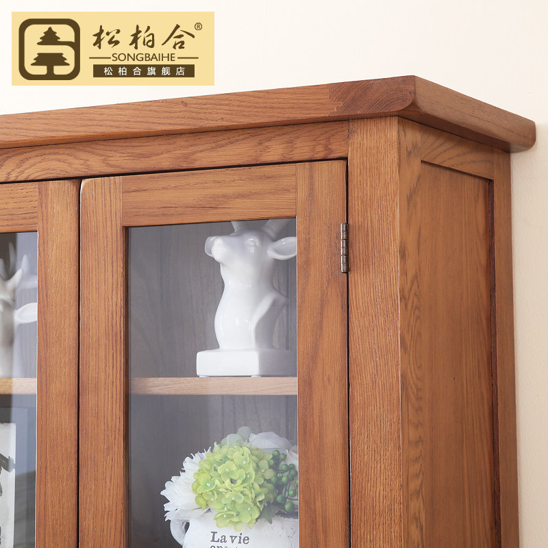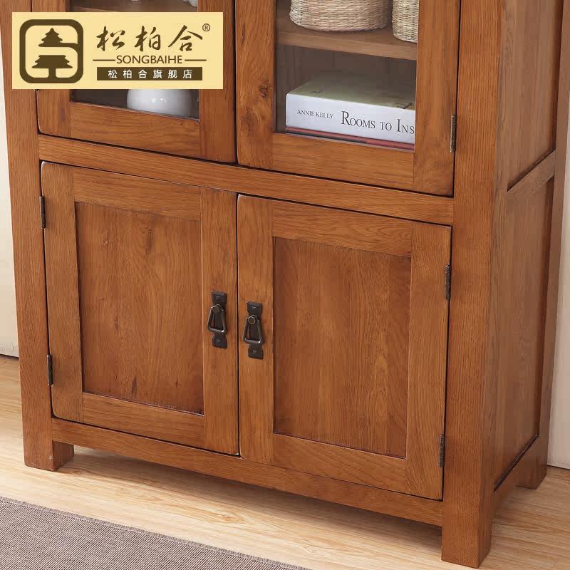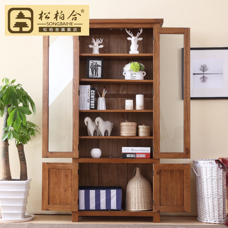 松柏合全实木美式仿古带门书柜