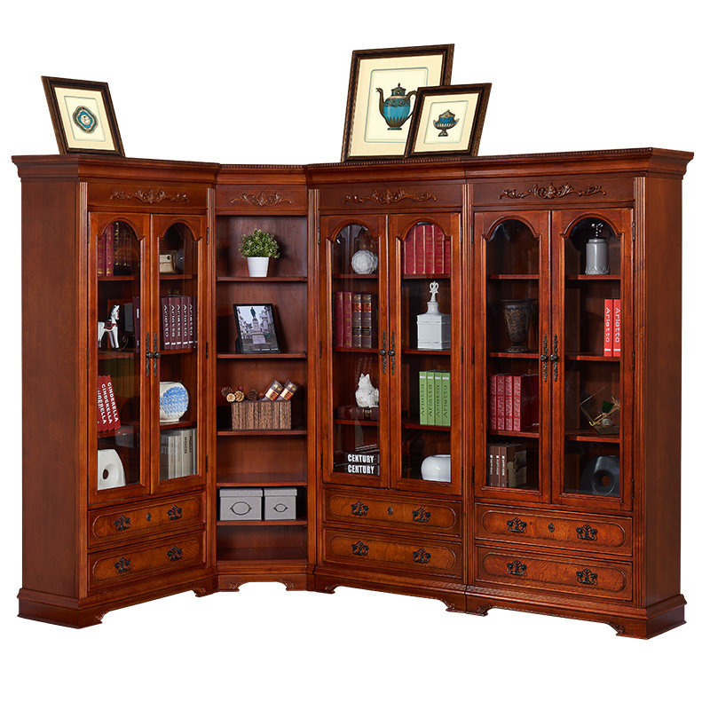 博诺尼美式实木玻璃门书橱HD1602