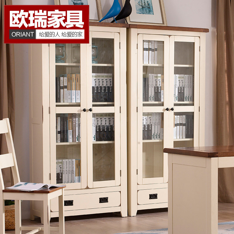 欧瑞家具地中海全实木玻璃窗书柜YKGDU