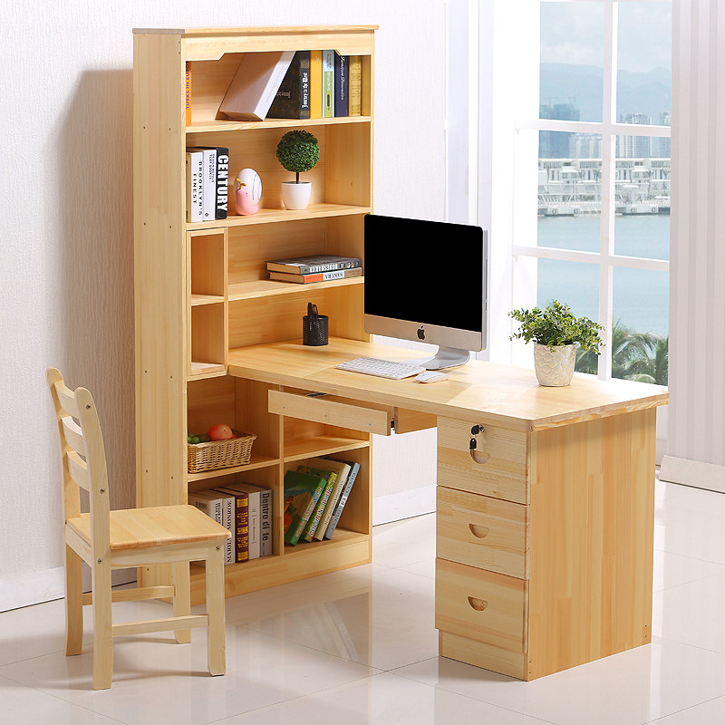 辉映美台式松木简约桌子带书架SMDNZ002