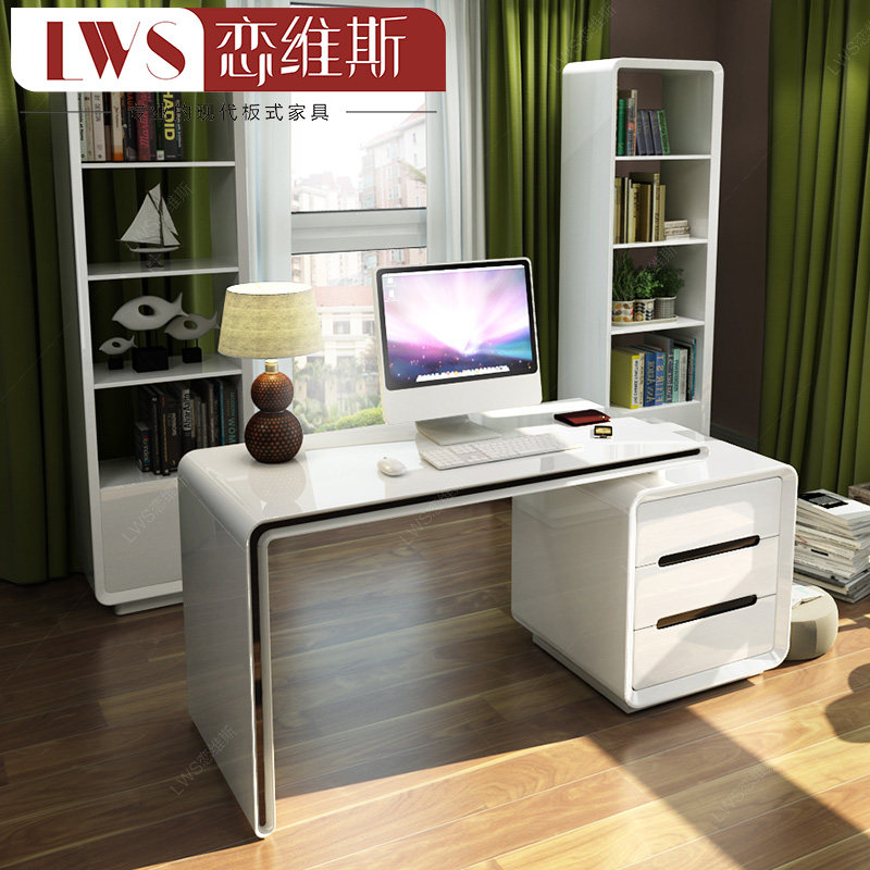 恋维斯现代简约白色烤漆书桌33621