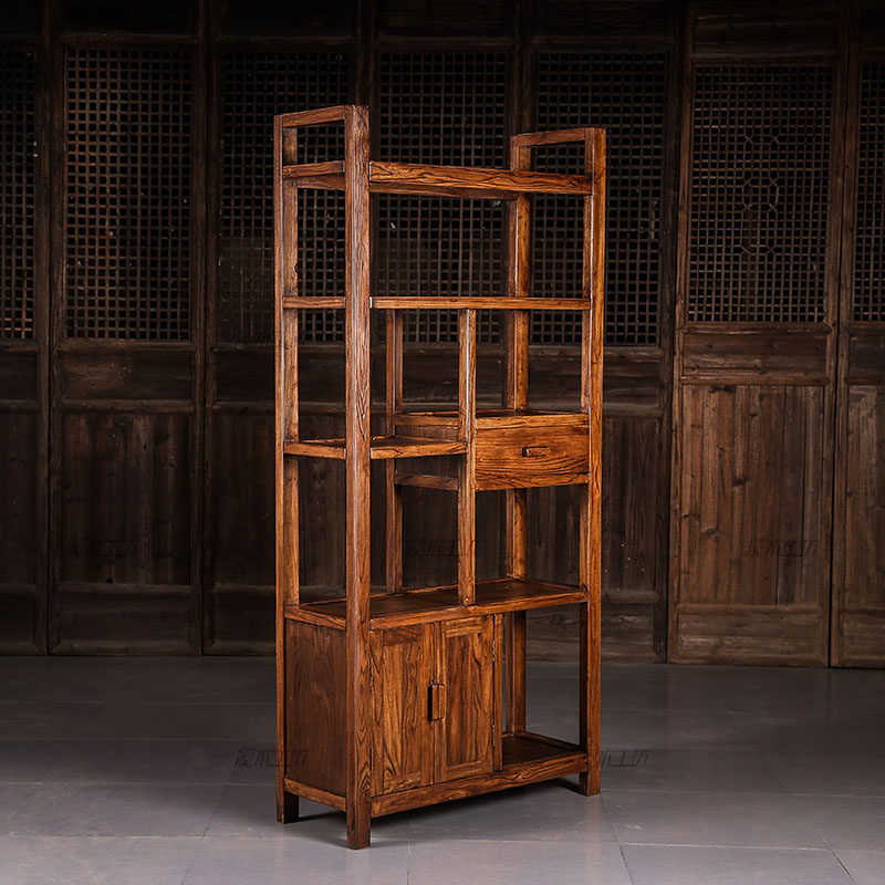 溪木工坊老榆木简约现代置物架B107