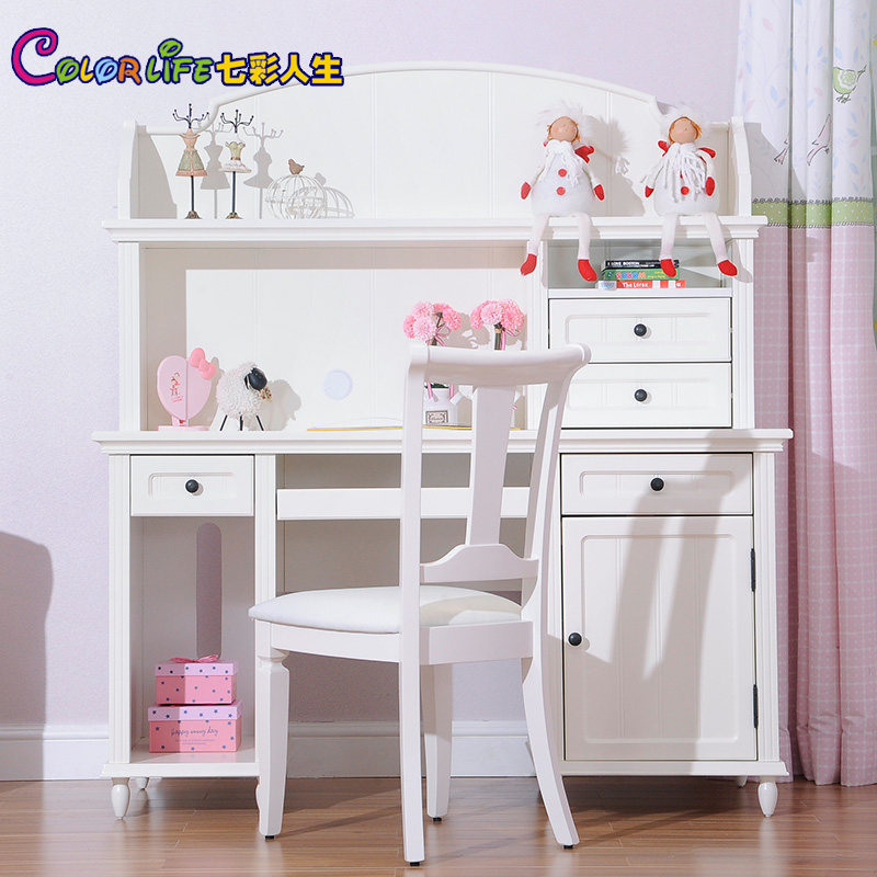 七彩人生儿童实木书桌书架组合ME-FO1010