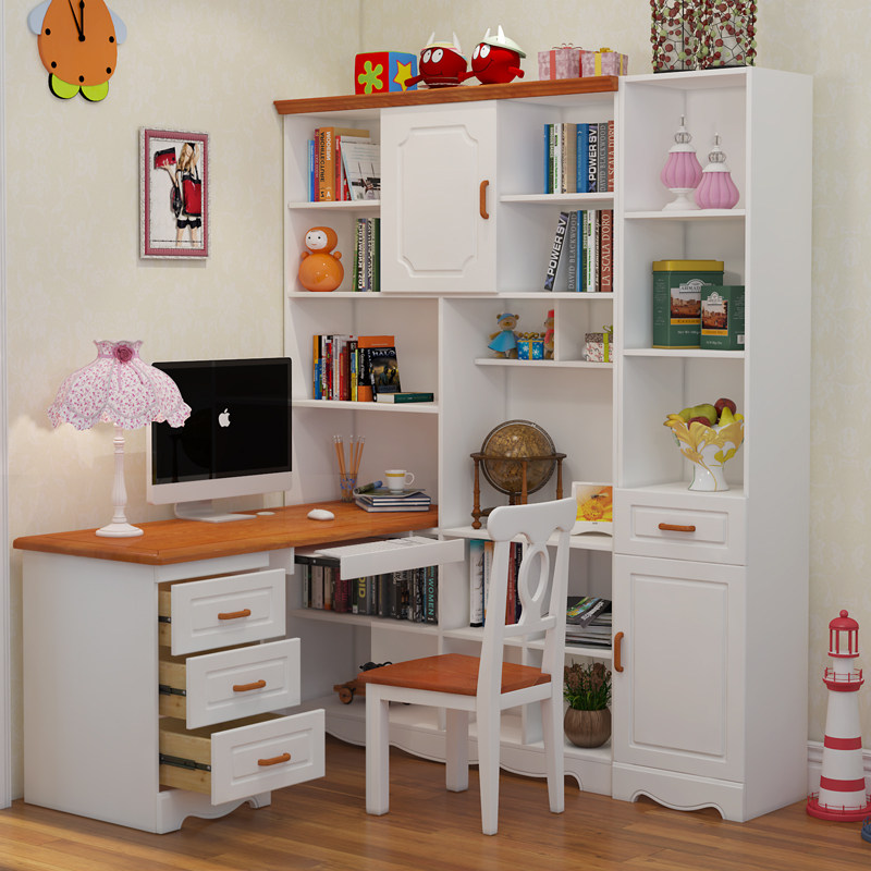 千彩居转角学习带书柜桌