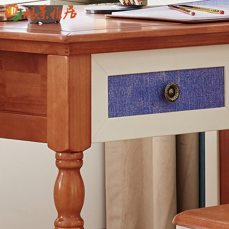 鹏景美式转角书桌全实木电脑桌书柜s70