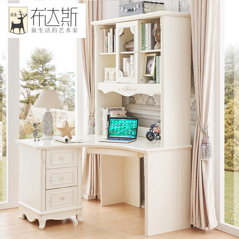 布达斯欧式实木象牙白写字台