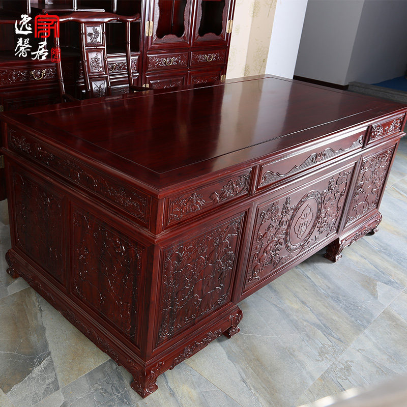 逸馨红木非洲酸枝木大班台DBT-01