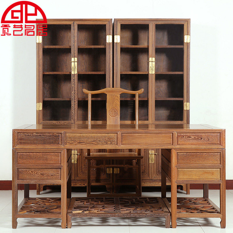 贡艺名居红木鸡翅木仿古中式书柜GY00588