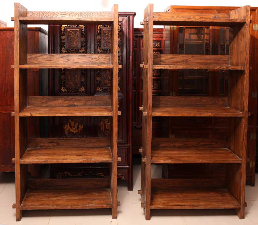 禧堂家居大料老榆木中式书架YMXGDSJ