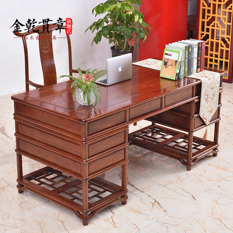 金乾贯章红木刺猬紫檀书桌HLBGZ044