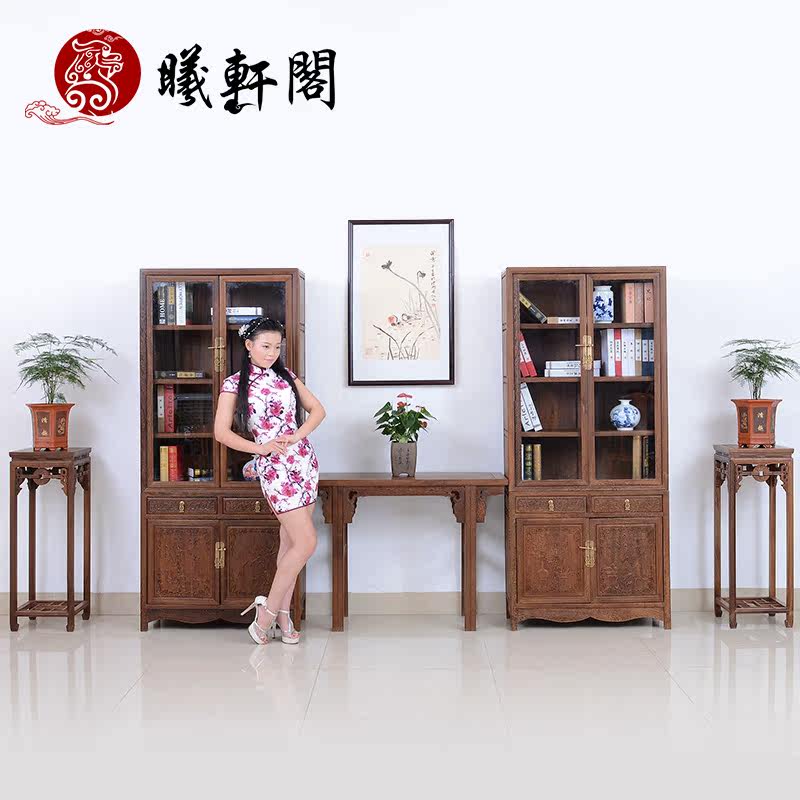 曦轩阁鸡翅木实木中式仿古书柜jcm-bgszsgzh0001