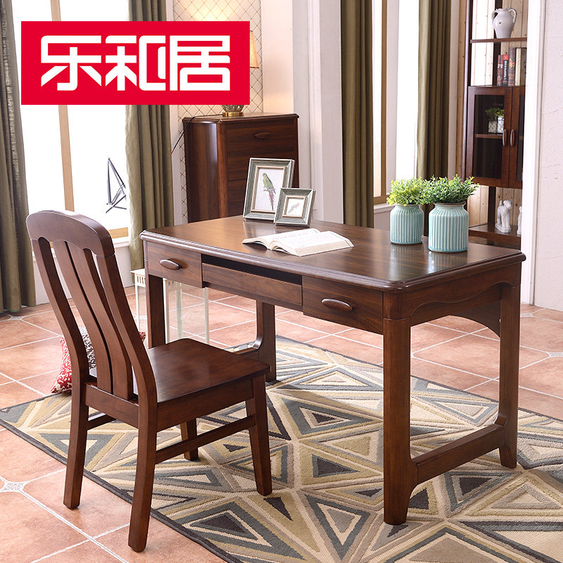 乐和居胡桃木色实木新中式书桌SZL019-T