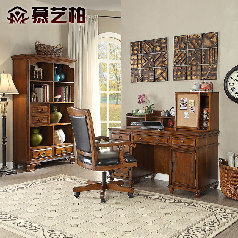 慕艺柏美式实木书桌复古乡村书桌书柜m8218