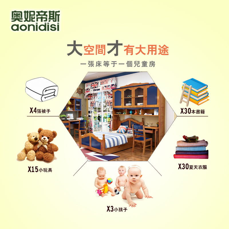 奥妮帝斯儿童实木组合衣柜床6811
