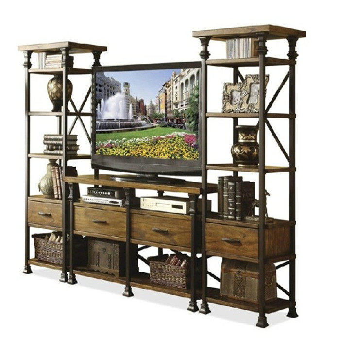 安娜西美式复古铁艺实木书架