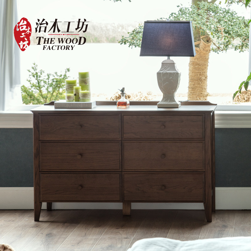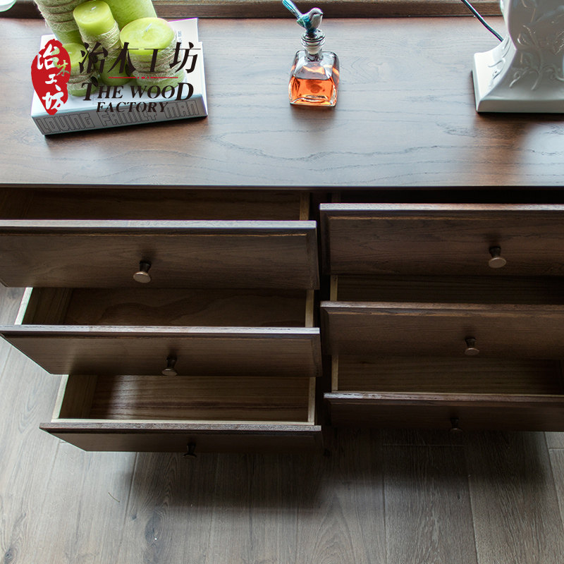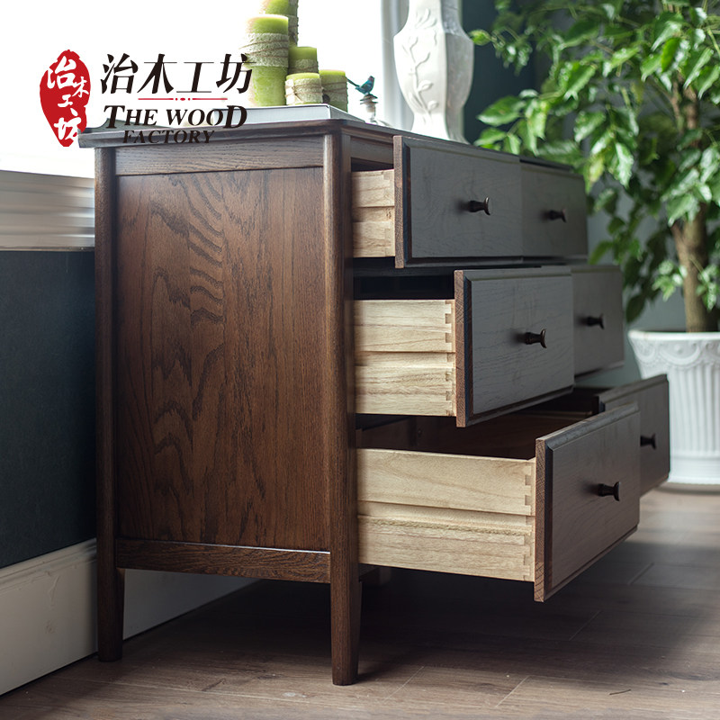 治木工坊简约黑胡桃色美式斗柜BTLDG-06