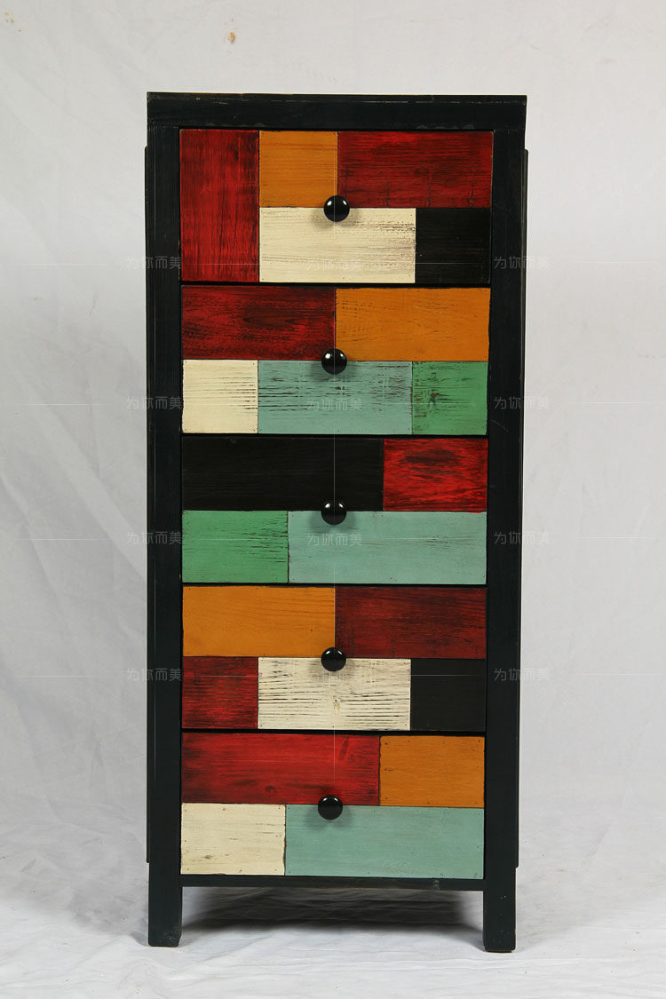为你而美美式乡村手绘多彩五斗柜WM-5055