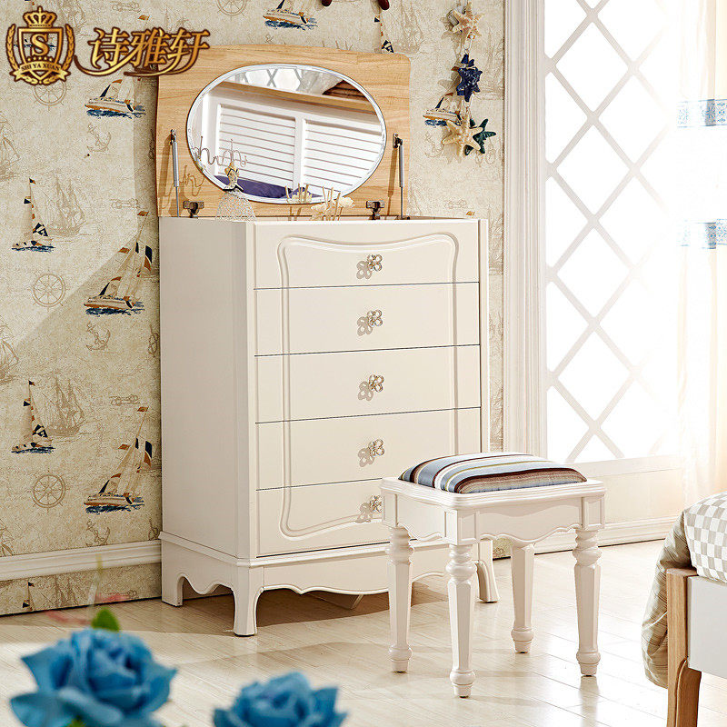 诗雅轩家具地中海五斗柜带镜实木斗柜163