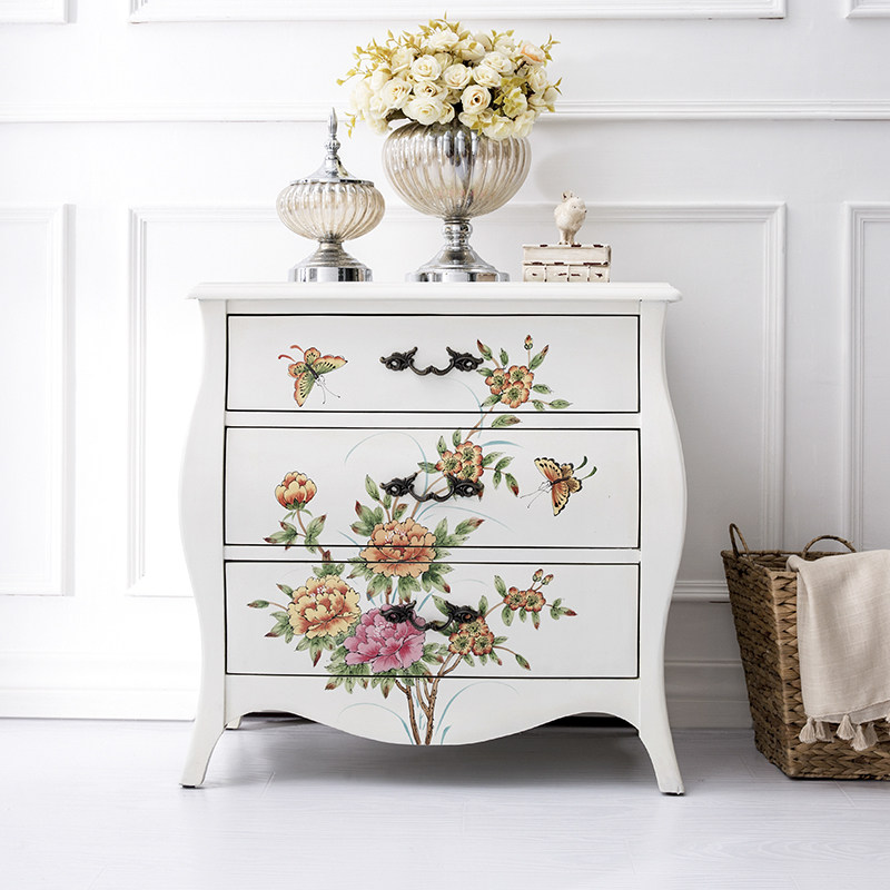 优梵艺术新古典彩绘三斗柜160004