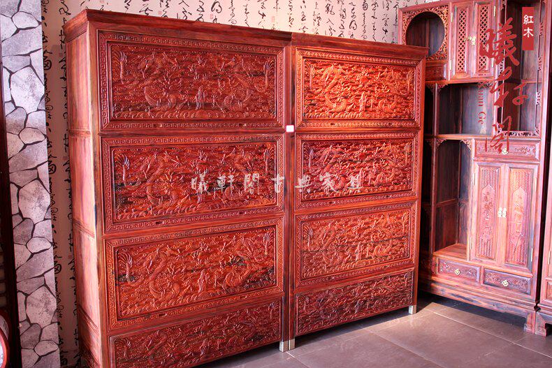 曦轩阁红木中式精雕刻龙斗橱