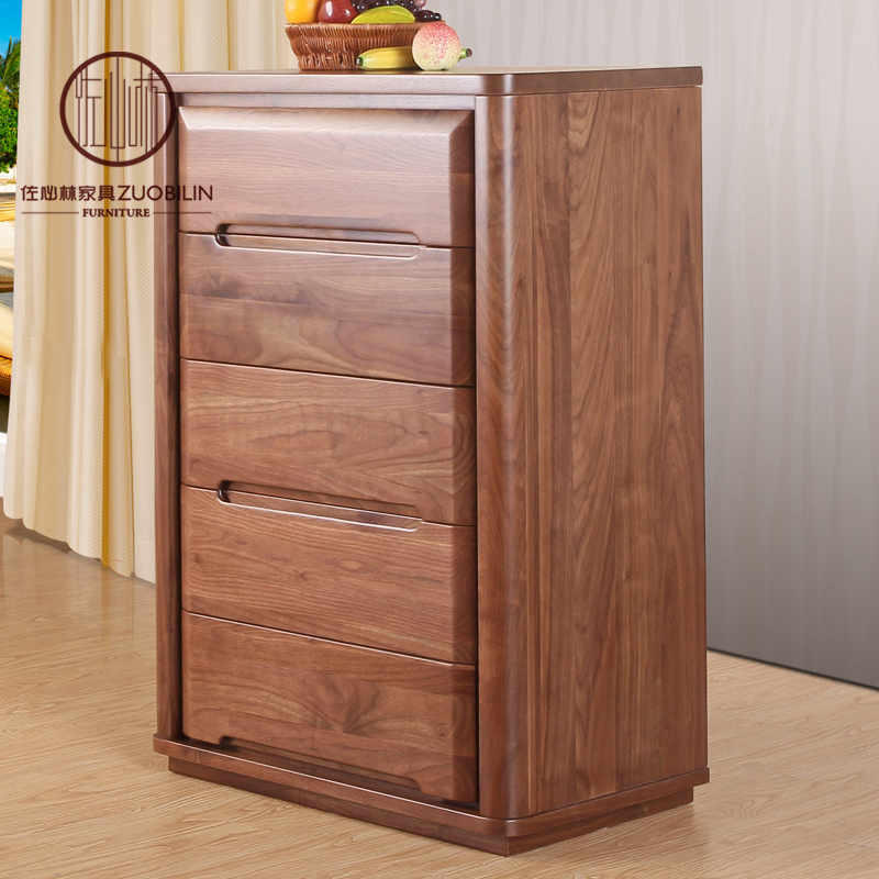 佐必林纯黑胡桃木五斗橱储物柜WY-19