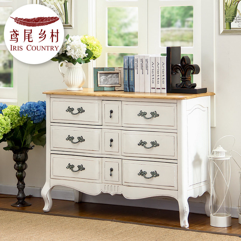 鸢尾乡村美式实木做旧简易边柜ef103102