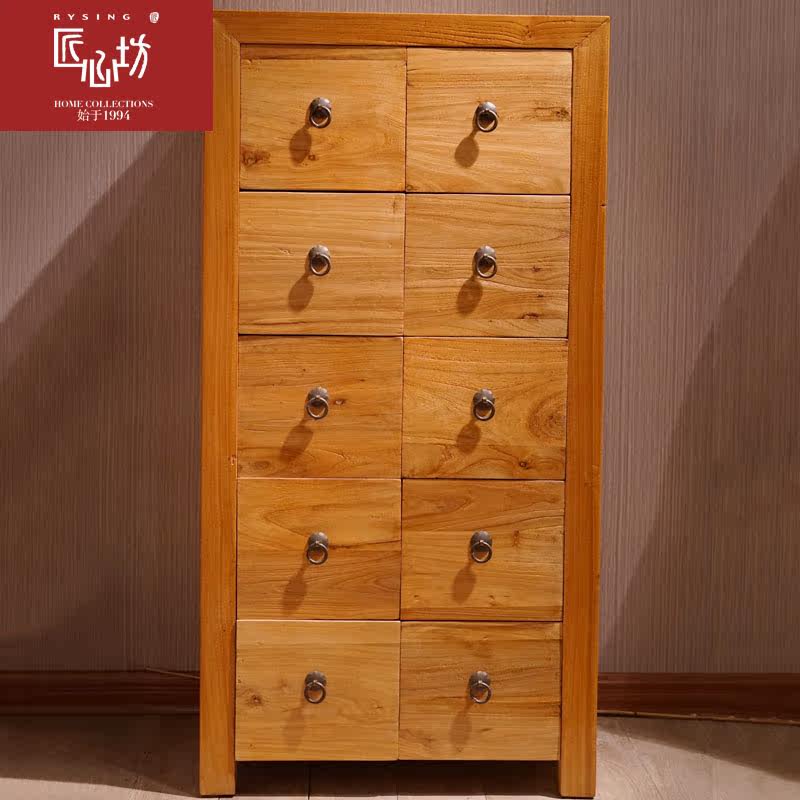 匠心坊家居老榆木实木储物斗橱