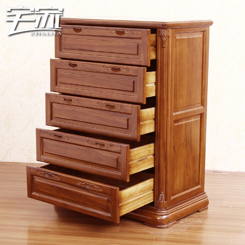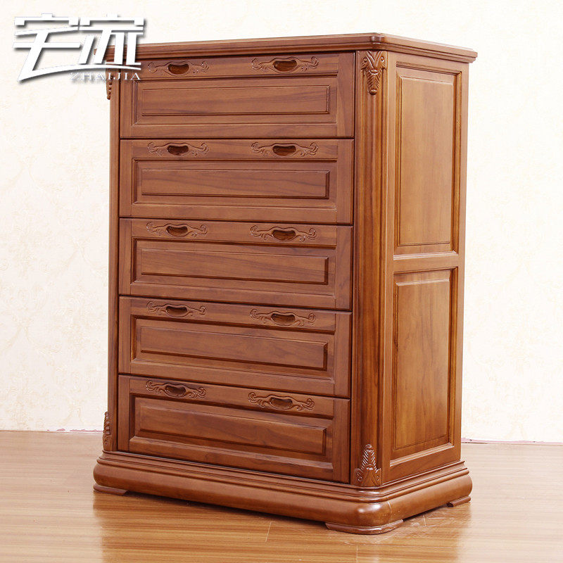 宅家缅甸柚木家具欧式全实木五斗柜B款